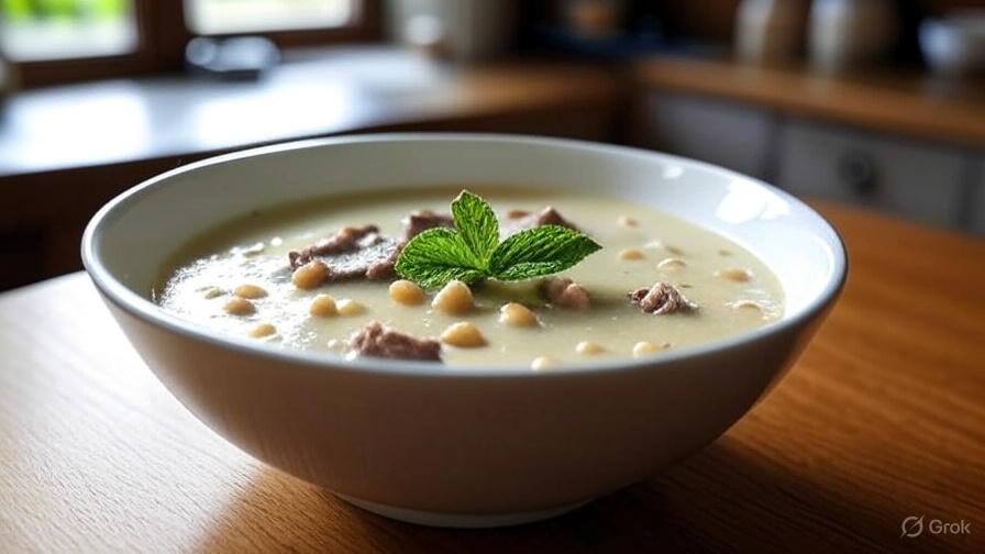 - Süzme yoğurt, un ve ılık et suyunu bir tencerede çırpıcı ile pürüzsüz bir kıvam alana kadar çırpın. Tencereyi ocağa alın ve kaynamaya bırakın.